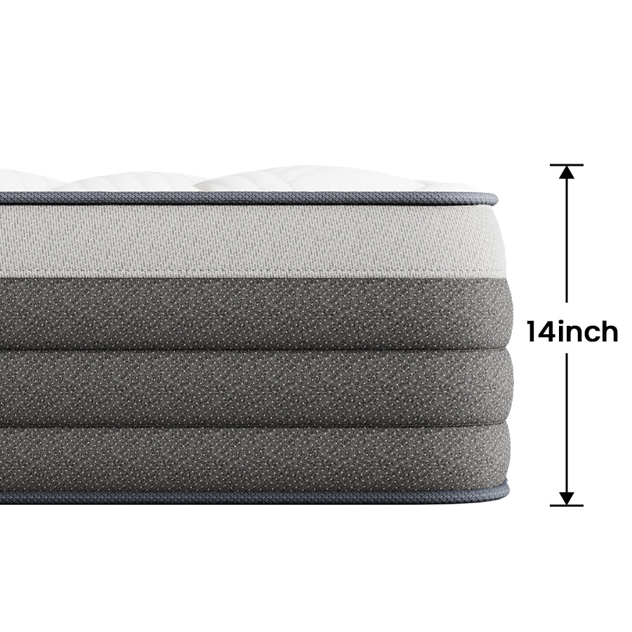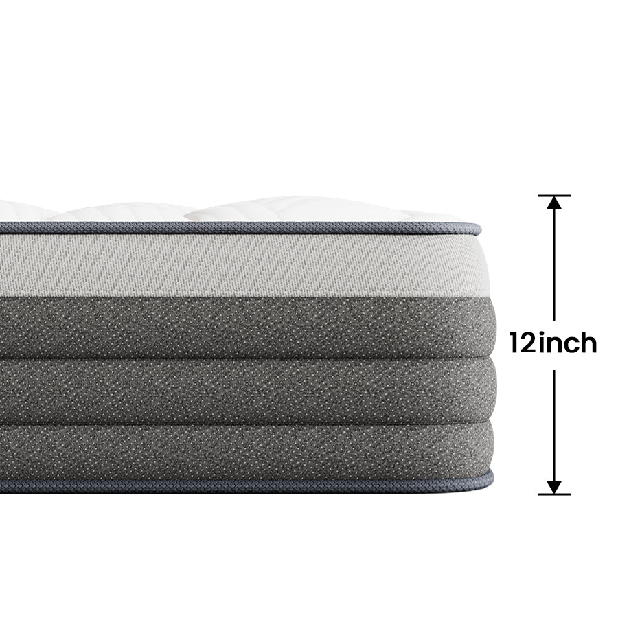 The soft foam layer naturally fits the body's curves, bringing a cloud-like comfortable wrapping feeling. The matched individually pocketed springs provide moderate support with a zoned design, firmly supporting the body while relieving spinal pressure.