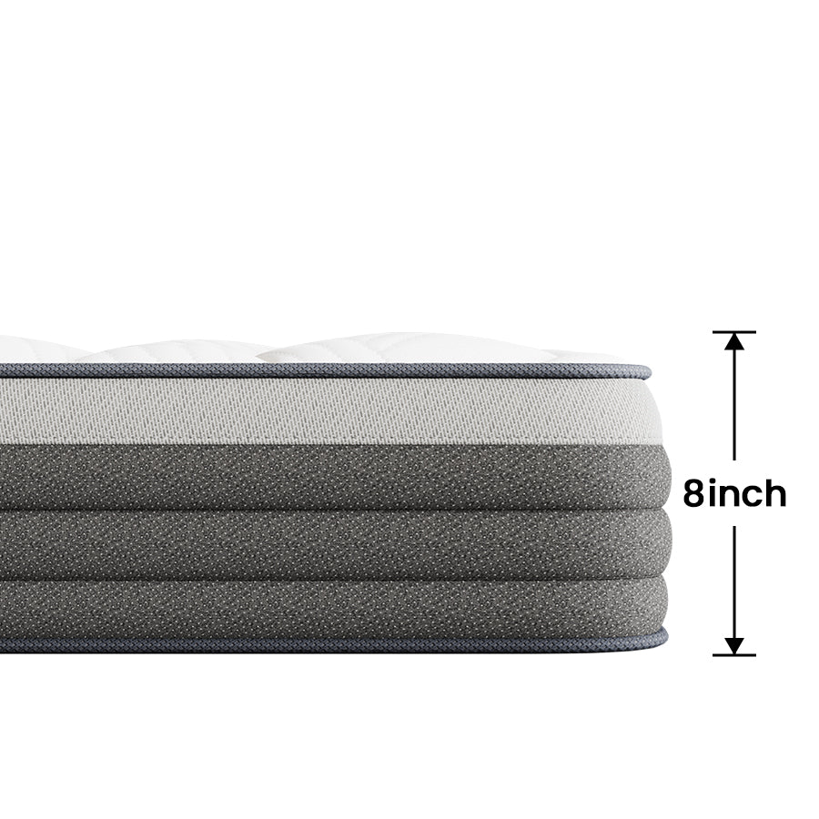 Hybrid Mattress refers to a type of mattress that combines individually pocketed springs with filling materials of different properties such as memory foam and latex. By complementing the advantages of different materials, it solves the problems of poor fit and easy noise after long-term use of pure spring mattresses, as well as weak support and limited air permeability of pure memory foam mattresses, achieves a balance between support and fit, and is suitable for more sleeping habits.